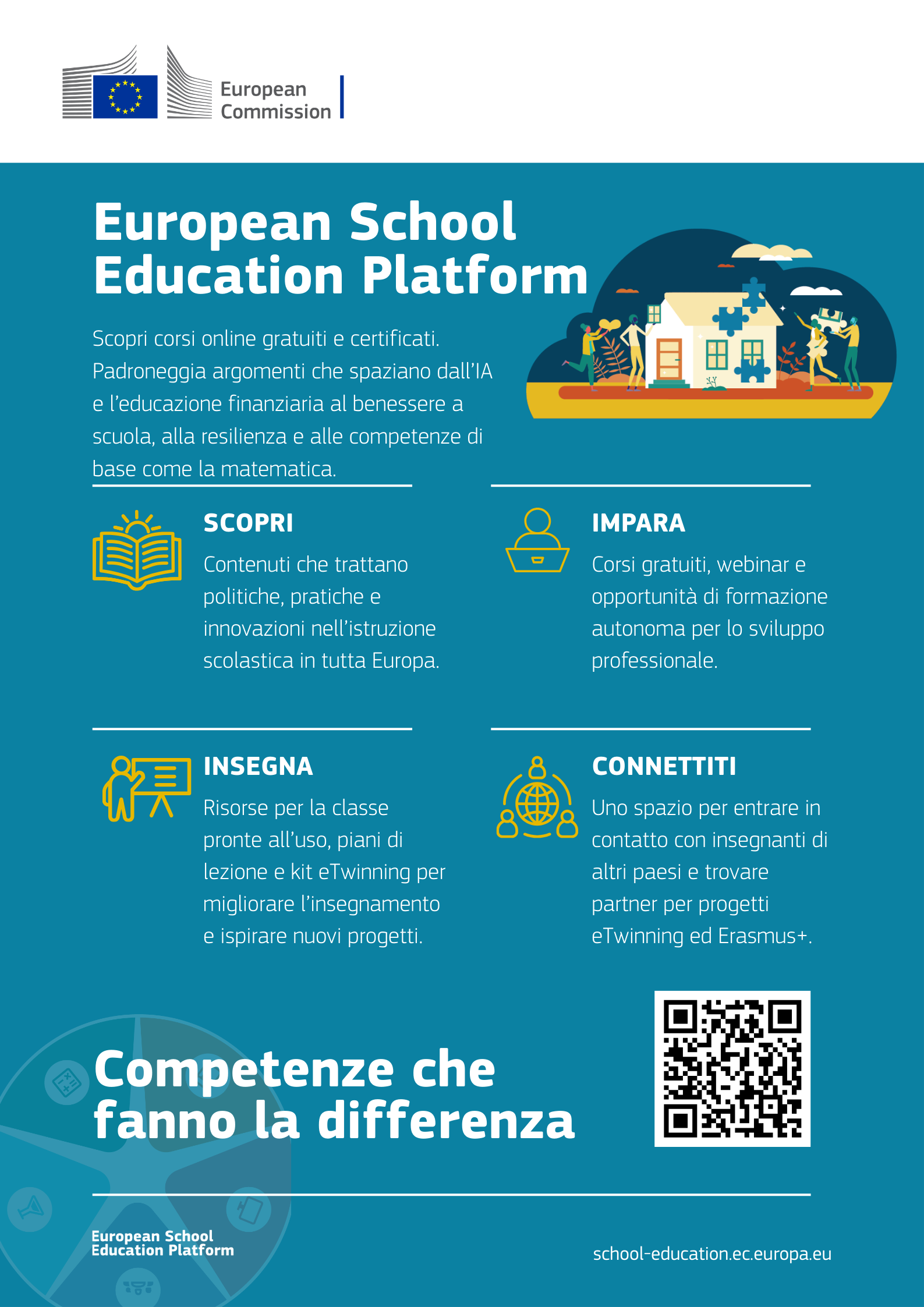 Questa piattaforma online ad accesso libero pensata per mettere in contatto insegnanti, dirigenti scolastici, formatori e altri professionisti dell’educazione, offrendo risorse, strumenti e opportunità di formazione e collaborazione a livello europeo.